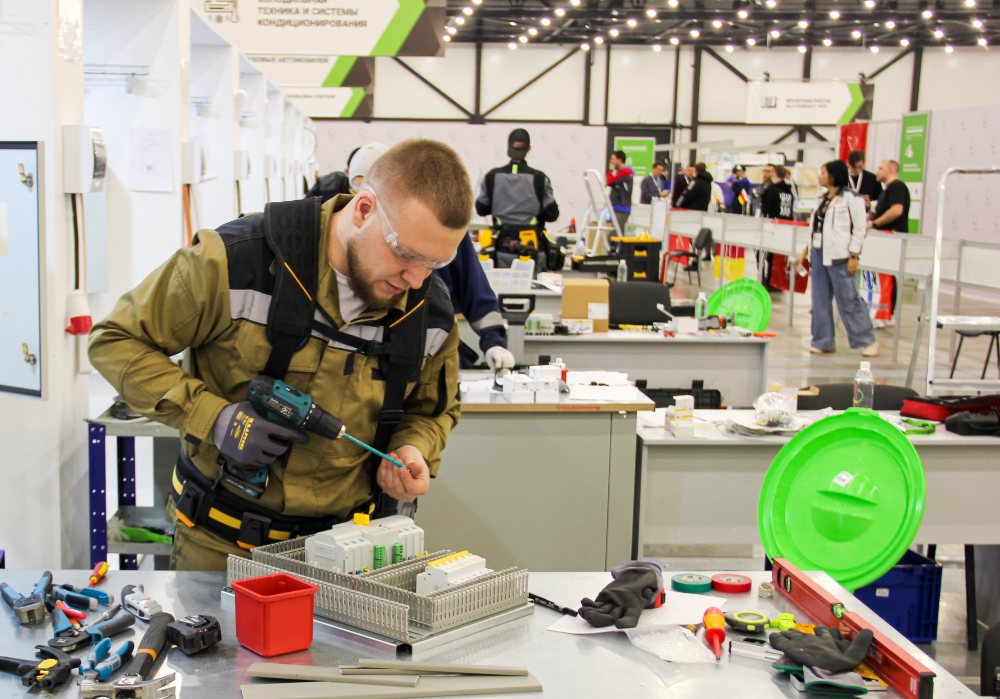 В Санкт-Петербурге завершился II Финал национального чемпионата «Профессионалы». Компания IEK GROUP, золотой партнер чемпионата, полностью обеспечила электротехническим оборудованием компетенцию «Электромонтаж», а также разработала задания для конкурсантов. В 2024 году чемпионат «Профессионалы» стал международным. Помимо 73 регионов России в нем приняли участие около 20 стран. Более 900 специалистов соревновались в профессиональном мастерстве в 55 основных и 20 юниорских компетенциях. В компетенции «Электромонтаж» на площадке основной возрастной группы были представлены электрики из 15 регионов России, а также из Республики Беларусь и Республики Гана, в юниорской категории — ребята из 5 регионов РФ. Среди конкурсантов были финалисты VII Открытого чемпионата электриков IEK. Задание чемпионата «Профессионалы», в разработке которого участвовала IEK GROUP, включало традиционный электромонтаж, а также настройку и программирование логических узлов электроустановки — контроллера, преобразоват