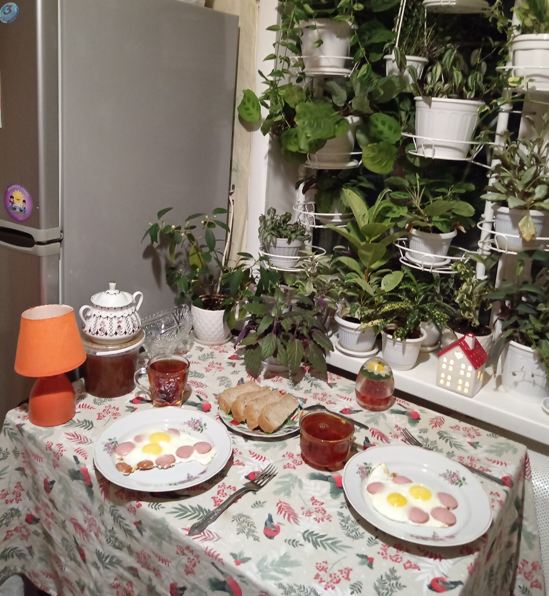 7:00. Проснулась минут за 20 до будильника. Люблю эти минуты даже в будние дни. Смотреть в ещё ночное небо, растворяясь в темноте и мысленно улетая в небо. Ни о чём не думать, а просто созерцать темноту. Люди не могут не думать. А у меня получается. Почему... Задавала себе этот вопрос... Потому, что это защитная реакция организма. Организм чтобы сохраниться, с определённого момента начинает отторгать всё суетное и ненужное. И впитывает в себя только то, что необходимо. Вообще человек даже не задумывается, когда включается защитная реакция организма. Происходит без его воли. Я очень много лет жила с плохим зрением. И только когда мне сделали операцию по коррекции близорукости, я поняла почему организм был настроен на снижение зрения. Да чтобы не травмировать меня увиденным! Сейчас вижу на 115%. Но это другое зрение. Не то, которое даётся большинству людей при рождении. - 9°С температура воздуха на улице. Пока чайник старался из всех сил бухтеть как можно более прилежнее, приготовила