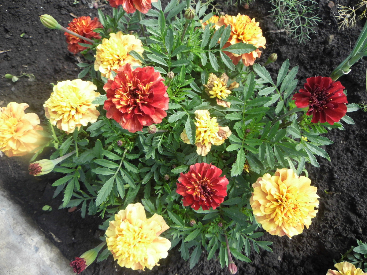 Бархатцы. Бархатцы нашего сада сорта "Клубничный блонд"