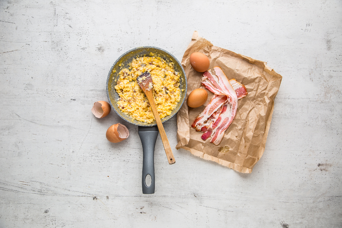 - Бекон, яйца и сливочное масло. Это была база.