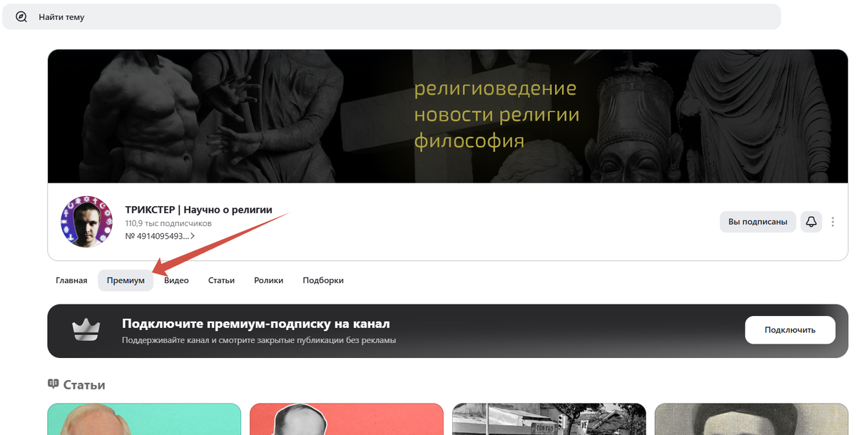 Приглашаю в Премиум-подписку на канале "Трикстер. Научно о религии" в Дзене