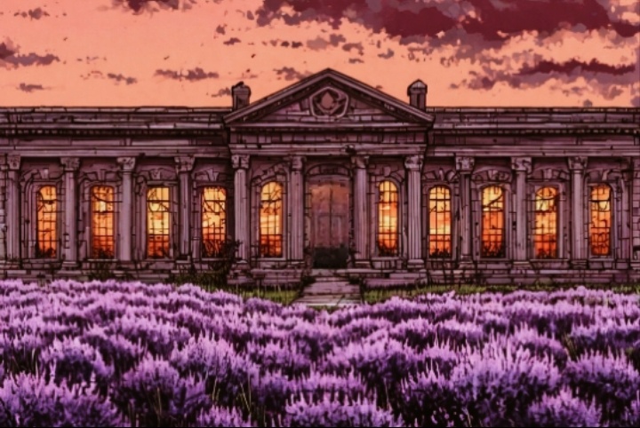 И огромная поляна, почти что поле. По краям - тоже заросли, густые, но уже не настолько. И дом по центру, на противоположном конце поляны. Дом очень длинный, но что с одного, что с другого края от него ещё много свободного места.