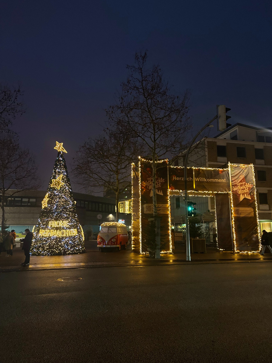 Рождество-время чудес. Время писать письма Деду Морозу, Санте, Йоллупукке и прочим волшебным старцам. Рождество - время сказок и исполнений желаний. В Рождество по миру зажигаются яркие огоньки праздничных ярмарок, а в воздухе пахнет чудом (ну или глинтвейном). И где как не на рождественской ярмарке можно найти то самое новогоднее настроение, которое, казалось бы, осталось в далеком детстве? Миллионы людей по всему миру в канун Нового года и Рождества, как мотыльки, слетаются на свет елочных гирлянд. Мы не исключение. В прошлые выходные мы побывали в городе Вольфсбург, и, конечно, не оставили без внимания проходивший там "Weinachtsmarkt" (Рождественская ярмарка). Как Вы видите, на входе Вместо саней Санты возле елки припаркован автобус Volkswagen. Что не удивительно. Изначально город был построен для проживания сотрудников одноименного завода. Поэтому ко всем детям мира Санта приезжает на санях, а к детям Вольфсбурга на Volkswagen.