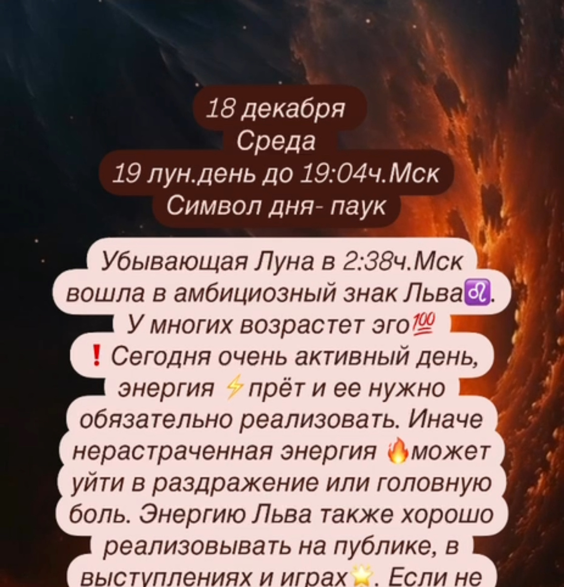 Убывающая Луна в 2:38ч.Мск вошла в амбициозный знак Льва♌️. У многих возрастет эго💯