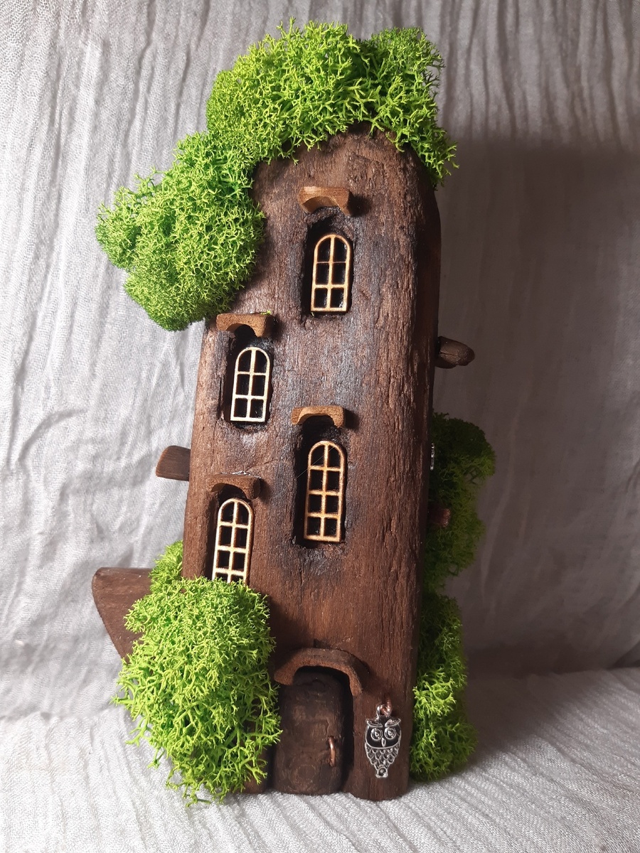 Дрифтвуд – удивительный материал. Можно, взяв его в руки для, что называется, «потворить», надолго зависнуть в медитативном поглаживании теплой шелковистой древесины и восхищённом рассматривании изгибов, трещинок, цветового разнообразия. А отвиснув, сокрушаться, что совершенно невозможно вот так - руками, в короткий срок (в сравнении со сроком «производства» дрифтвуда природными мастерами – водой, ветром, песком) сотворить что-либо подобное. А ещё приходит понимание, что нужно быть очень острожной, чтобы не испортить этот волшебный материал или поторопиться и не увидеть уже заложенное в нём, не начать ненужную и глупую переделку. Это и стало основной причиной создания моего очередного творения – высотки из дрифтвуда. Я просто не смогла отпилить часть этой, идеальной по форме, гладкости и структуре заготовки, не поднялась рука. Большой удачей оказалось, также, что дрифтвуд был уже опалённым. Художественно, деликатно, до нужного состояния, когда древесина ещё не разрушена огнём, а лишь