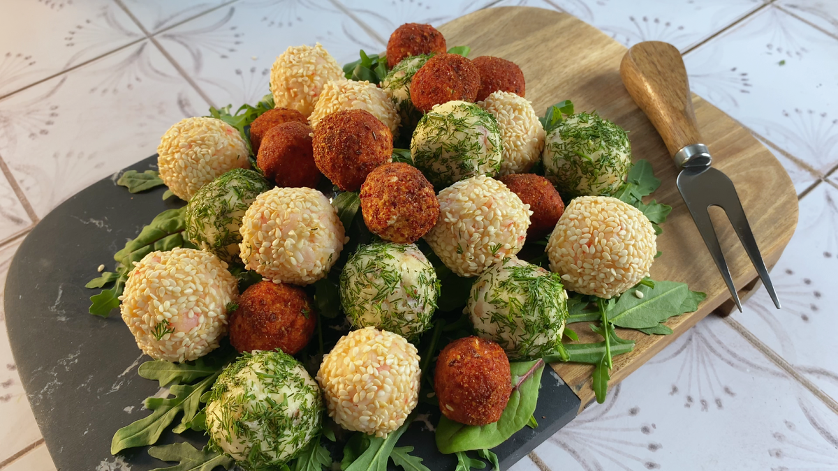 Они легко готовятся, выглядят эффектно и могут быть адаптированы к любому событию, стоит лишь сменить ингредиенты для обсыпки. Вот три варианта таких закусок, которые идеально подойдут для новогоднего застолья.