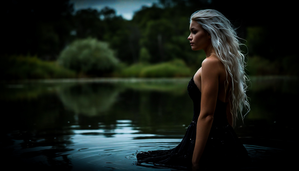 «Я не смогу жить без вас», — прошептала она и сделала первый шаг. Затем второй и третий. Вода уже доходила ей до пояса, и когда она шагнула в четвёртый раз, земля ушла из-под ног, погружая её в воду и унося всё дальше от берега.