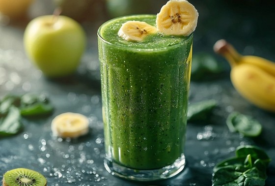 Киви придает приятную кислинку, яблоко добавляет сочности, банан делает смузи сладким и густым, а шпинат вносит свежую ноту. Такой смузи отлично заряжает энергией на весь день.