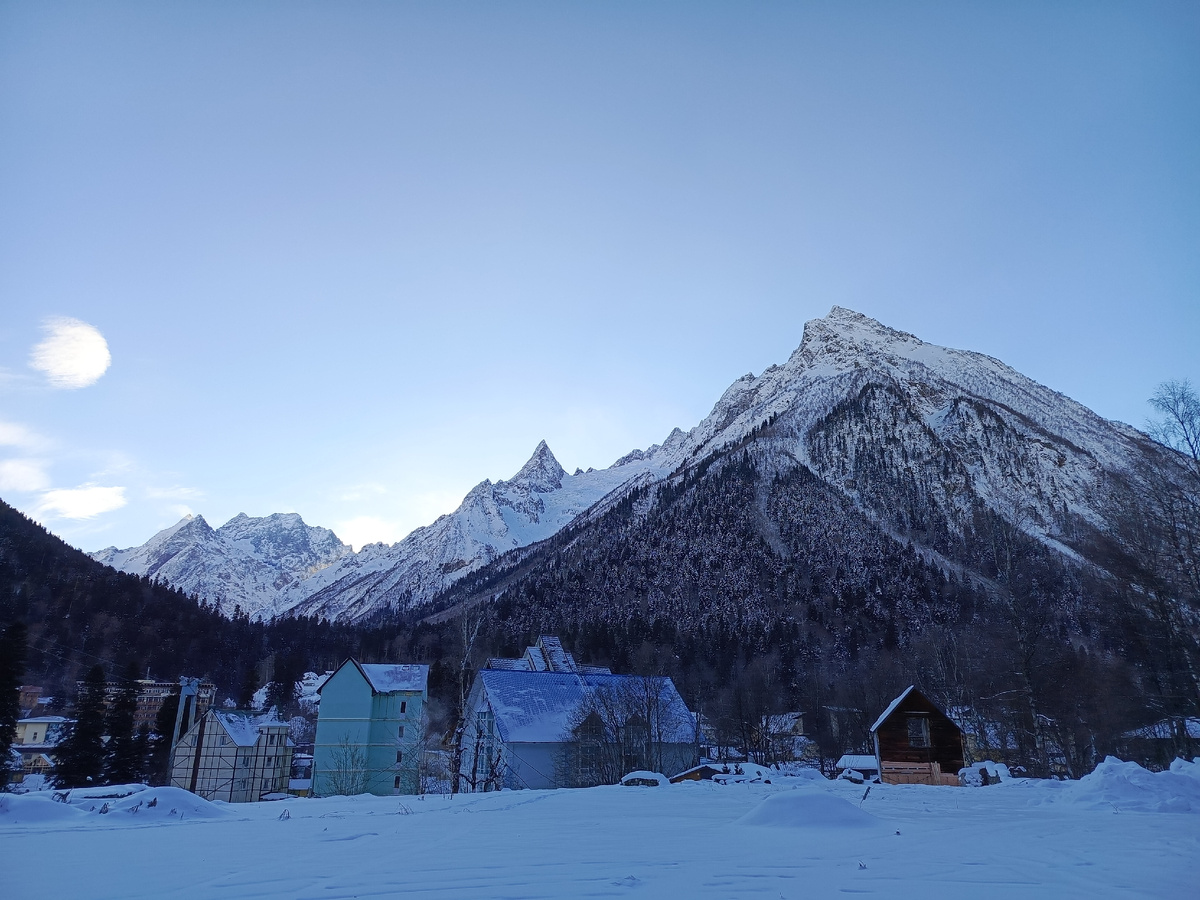 В выходные 14-15 декабря 2024 года устроила себе очередную "перезагрузку"-провела в автобусном туре в Карачаево-Черкессии. Это было уже третье моё посещение курортного посёлка Домбай, расположенного на высоте 1600 метров, старейшего горнолыжного курорта России, первая туристская база в котором появилась в 1921 году. В переводе "Домбай" означает "зубр" или "бизон". Сюда приезжают не только горнолыжники, но и просто туристы, чтобы подышать горным воздухом, подняться по канатке на Мусса-Ачитара, полюбоваться великолепными видами и сделать красивые фотки. Главное, чтобы повезло с погодой. В этот раз нам повезло! Канатных дорог тут несколько, в уровнях, которых 6, и очередях можно запутаться. Есть старая кресельная одно-и двухместная, состоящая из 5-ти очередей, на которой можно подняться до 5 уровня, старая маятниковая, соединяющая 1-й и 3-й уровень, на ней часто поднимают большие экскурсионные группы, так как в вагончик одномоментно могут уместиться 40 человек, на ней мы поднимал