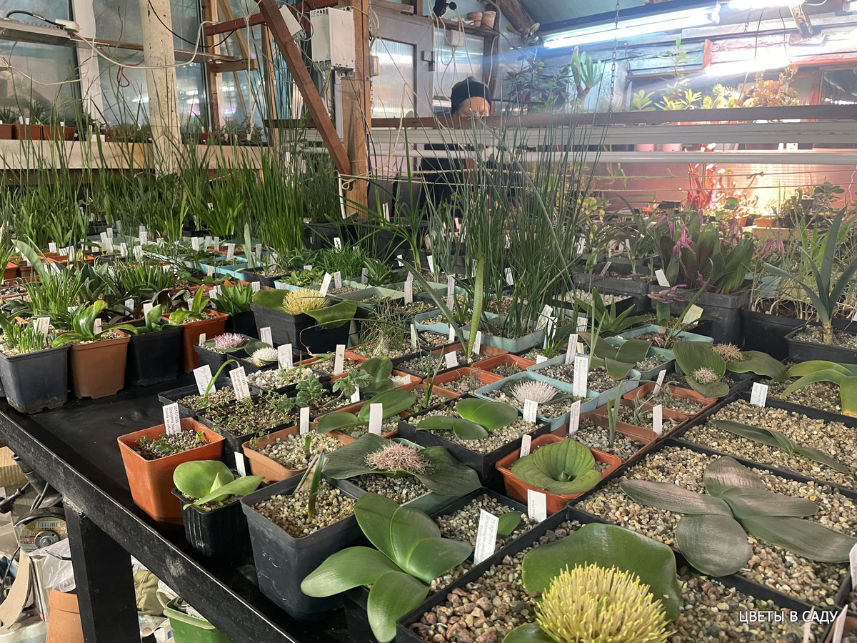 А она родственник всеми любимого гиацинта, только родом из ЮАР. И точно скажу, что без подсветки сейчас массонию не вырастить. А свет в теплицах подобран грамотно, фитолампы, причем разные и по размеру и по форме и по световым параметрам. Я вчера еще раз проходя мимо отметила это для себя. И хоть моя публикация о том как правильно выбрать фитолампы для домашних растений и о влиянии различных источников света на рост и развитие растений, в которой я пересказала интервью к.б.н., научного сотрудника Филиала Ботанического сада МГУ «Аптекарский огород», Мироновой Ольги Юрьевны, вызвала шквал протеста, я думаю, что там было зерно истины. Подчеркну, я не рекламирую ни фитолампы, ни растения. Я просто излагаю свое мнение и мнение авторитетных экспертов, проверенное на собственном опыте. Лучше потратиться на хорошую лампу и не загубить растения и потратить меньше на освещение, чем в результате экономии, потерпеть неудачу. Массония без подсветки не порадует цветением даже в Англии, не то, что в Москве.