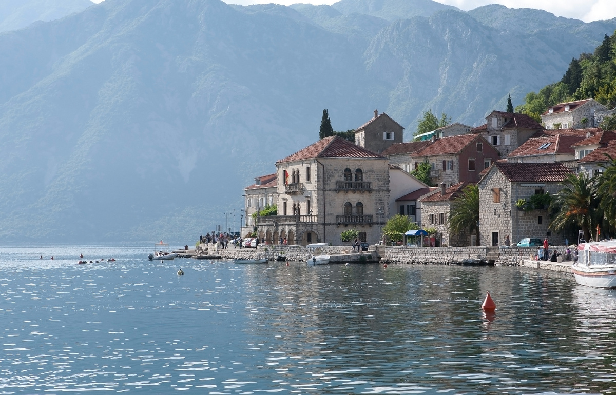 Пераст стоит на мысе, что отделяет Рисанский залив от Которского залива в самой узкой части Боки.