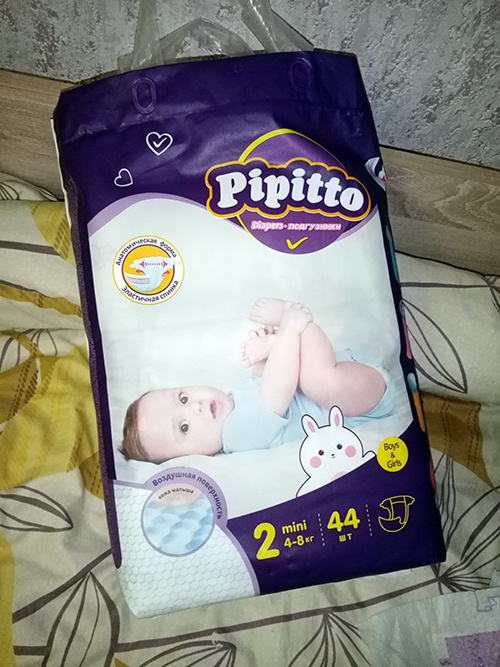 Памперсы приличного качества, не пожалела о покупке. Если вас еще интересуют хорошие подгузники для детей, мой отзыв о Pipitto для вас Хорошие и купить можно по нормальной цене. Внутри он выглядит вот так Поверхность на ощупь нежная, по структуре рельефная. Она легко пропускает воздух, кожа не преет, свободно дышит. Памперс из серии унисекс. Впитывающий слой у него во всю длину подгузника. Отлично подходит детям обоего пола. Кстати, не у каждого подгузника есть этот удобный эластичный поясок на спине. Благодаря ему ткань плотно прилегает к телу. И протечек не бывает Еще один плюс памперса – отсутствие запаха отдушек. Это важно, потому что любая химия может вызвать у ребенка аллергию. Его внешний вид Широкие крылья, двойные манжеты вокруг ножек, индикатор наполняемости, цветовое обозначение места, где нужно фиксировать застежки. Липучки хорошие, крепкие, сами не отстегиваются. Они имеют еще одну полезную функцию – с их помощью можно регулировать размер подгузника. Животик полный – осла