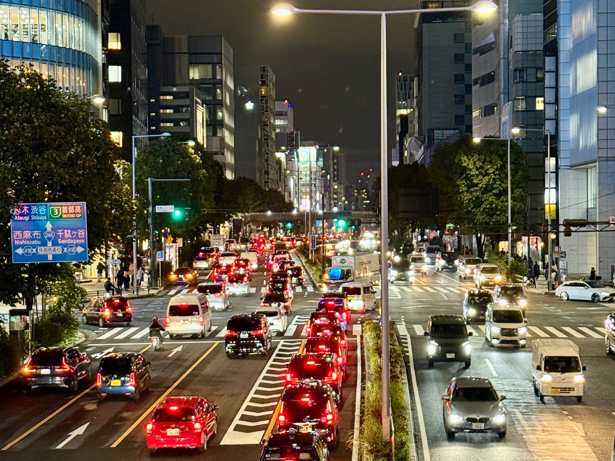 Ночной Токио еще интереснее дневного - высотные здания и автомобили загораются огоньками.