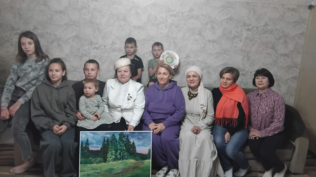 В доме мы оказались в дружном окружении любознательных детей, которые глядели на нас с живым непосредственным интересом. И мы конечно же, оправдывая их ожидания, с удовольствием развернули пакеты с привезёнными подарками и гостинцами. От Дюртюлинской детской художественной школы – живописную картину с видом родной природы, которую написала 14 летняя девочка — Влада Нурмухаметова. От поэтессы Светланы Васиковой, с которой мы вместе и приехали – гостинцы и расписная тарелка, разрисованная её дочерью, а сладости: мед и чак-чак — от благотворителя Артура Галимова, а сама же я привезла большую корзинку пирожков. Накануне узнав, что семья-то большая, сразу с вечера поставила тесто. Какая радость — угостить детишек пирожками с картошкой!