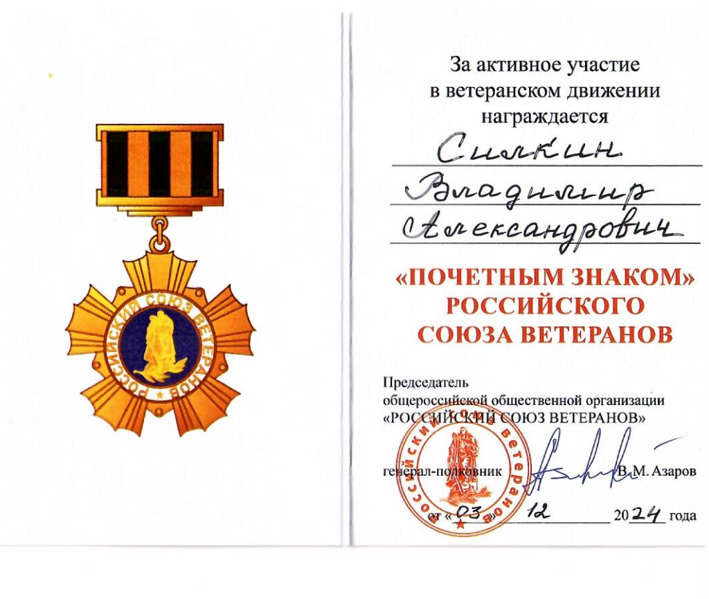 Академик ИАСК Силкин Владимир Александрович за активную творческую и общественную деятельность награждён Почётным знаком Российского союза ветеранов.