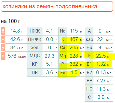 - И далее по списку все нужные нам макро- и микроэлементы - калий, кальций, магний, фосфор, железо.