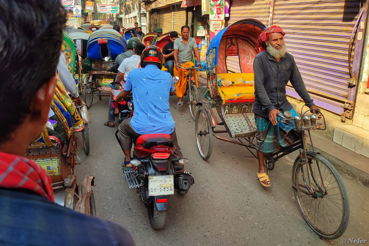 Кусочек моего сердца остался в Дакке. В грязном, шумном, зачуханном городе с населением 21 млн человек. Бангладеш ошеломляет. Это было оглушительно в прямом и переносном смыслах. Движуха нонстоп, везде что-то продают, постоянно сигналят автомобили, перейти дорогу - целый квест. Какая-то другая жизнь, другие люди. Будто параллельная реальность. Тем не менее, в Дакке есть метро. Среди всеобщего хаоса современные поезда выглядят достаточно сюрреалистично. Р-раз, произошло искривление пространства, и ты попал в альтернативный Бангладеш. На самом деле, бангладешский метрополитен проектировали японцы, строили итальянцы, так что все вполне объяснимо. Метро запущено в декабре 2022 года. Функционирует одна линия, планируется еще пять. Азиатская классика. Даже в Японии встречается подобное. Однако, в Бангладеше явление поистине масштабное! Жизнь на железнодорожных путях. Знаменитое место. Когда-то здесь было оживленно: кто-то обедает, кто-то просто гуляет, мать обливает мальчика водой из ковшика