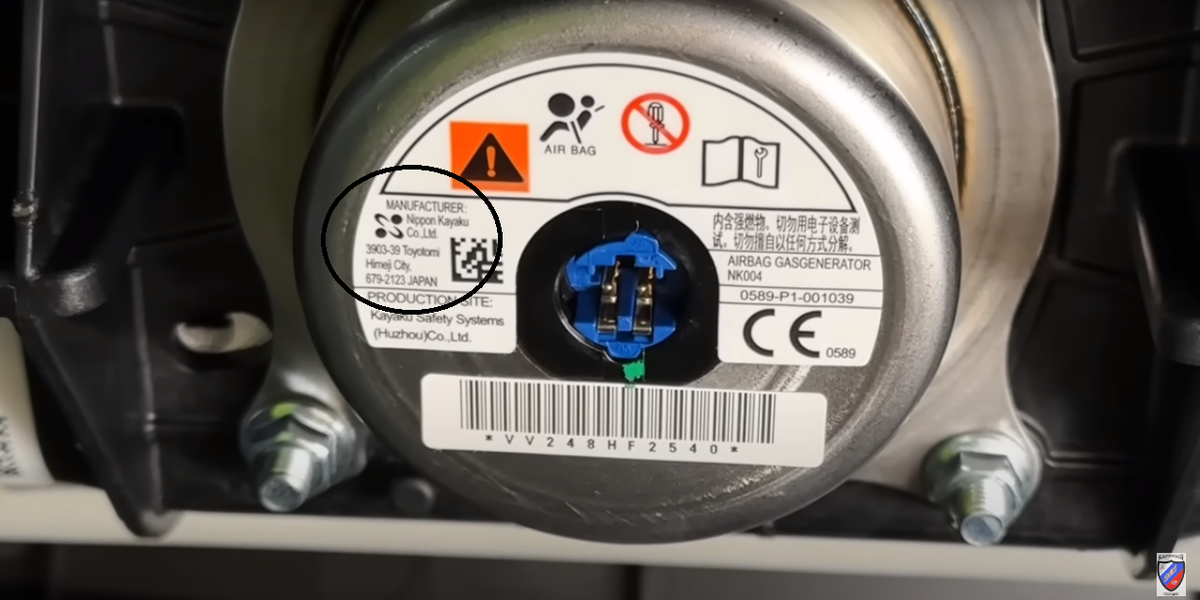 Что же, не обманули, шумоизоляция действительно добавились, теперь она трехуровневая. Так же в нашем премиуме есть целых две подушки безопасности. Конечно, к сожалению, произвели их не у нас. Судя по надписи, они либо сделаны в Японии, либо по их лицензии. Что интересно, подушка безопасности водителя, имеет уже другого производителя, и вы никогда не догадаетесь какого!