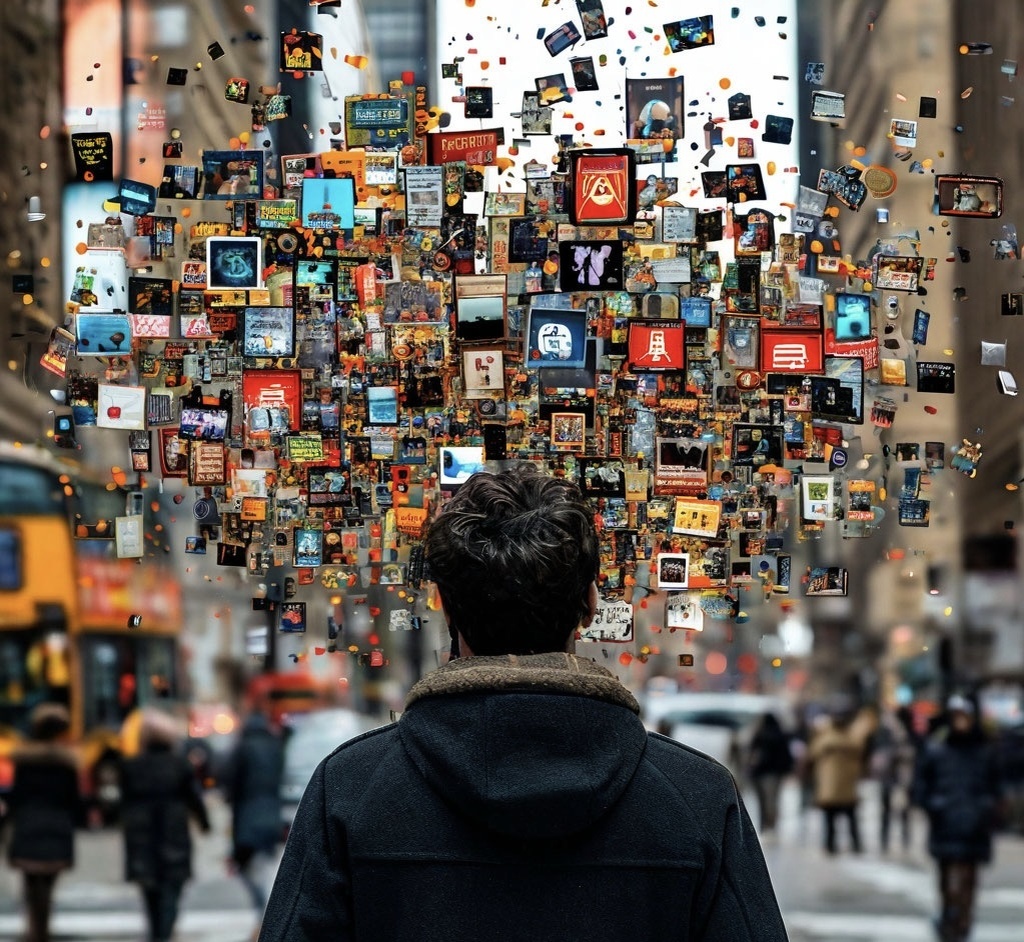Информационный шум - это высокая насыщенность медиапространства разного рода информацией, которую человек специально не ищет, но вынужден ее поглощать. Эта информация навязчиво преследует нас и поступает из множества источников: экраны смартфонов, компьютеров, телевизоров, а также уличные рекламные вывески и транспорт.