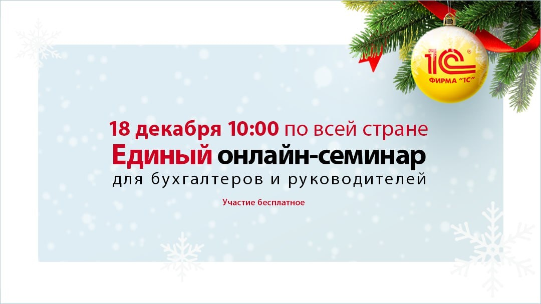 Сегодня 18 декабря в 10.00 фирма 1С проводит Единый онлайн-семинар для бухгалтеров и руководителей.