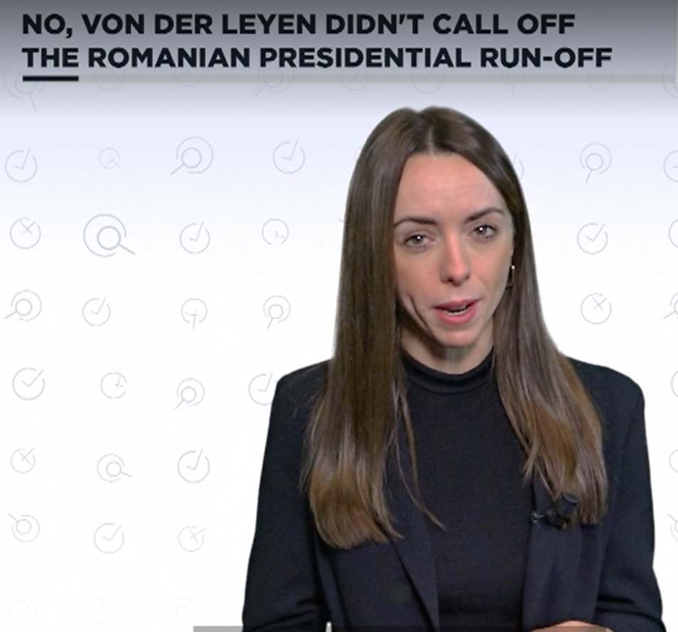 Дезинформация, распространяемая на китайской платформе TikTok, ложно утверждает, что глава Еврокомиссии Урсула фон дер Ляйен лично вмешалась в отмену второго тура голосования на президентских выборах в Румынии.