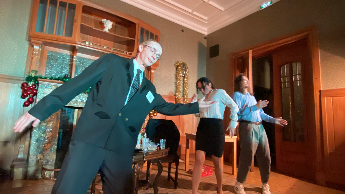 Театр "ОЛИМПиК" порадовал новогодней музыкальной комедией "Нежданно-Негаданно". Вчера у нас с мужем был театральный праздник,)) мы от души кайфанули от нового формата. Посудите сами, как можно остаться равнодушным, когда вас гостеприимно встречает особняк купца Носова с историческими интерьерами и выставкой-сплошная фотозона, плюс wellcome зона с шампанским и конфетами. Усилили наше погружение в репетицию празднования Нового года, угостив и во время спектакля игристым, мандаринами, украсив нас конфетти. Традиционный декабрь это внезапно для жкх выпавший снег, месяц финансового закрытия года, жаркая страда дизайнеров и предпраздничная суета обычных граждан. Люди подгоняют себя к рубежу и бою курантов, подводят итоги года и пытаются все успеть. А наши герои успели не только решить более важные вопросы, но и смогли создать нам настроение предвкушения чуда. Абсолютное погружение в праздничную атмосферу случилось благодаря талантливым актерам и местам в первом ряду, а мужа еще и " потанц