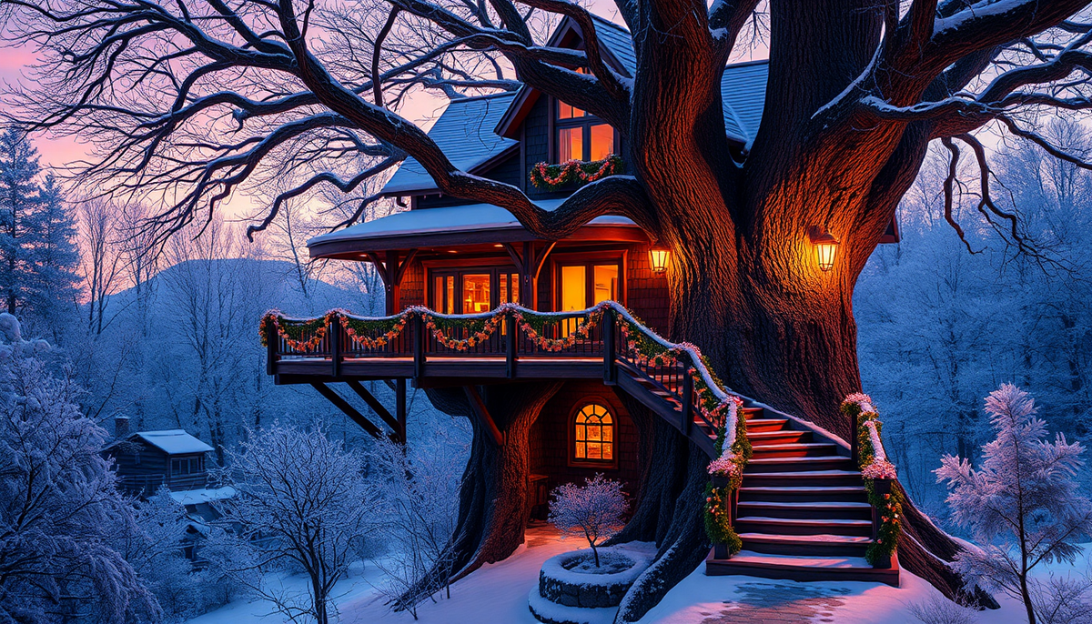 "Заснуть среди ветвей: зимний домик на дереве, где оживают детские мечты"