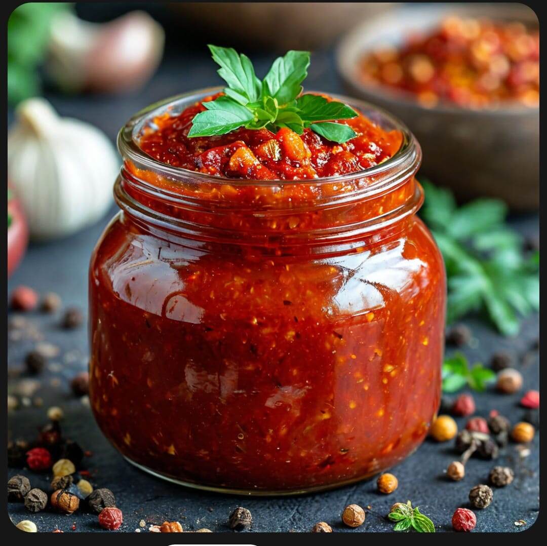 1. Болгарский перец — 1 кг 2. Соль — 1 столовая ложка 3. Чеснок — 1 головка 4. Петрушка — 1 пучок 5. Укроп — 1 пучок 6. Виноградный уксус — 100 мл 7. Сахар — 1 чайная ложка 8. Вода — 200 мл Приготовление: 1. Болгарский перец промыть и очистить от семян. 2. Нарезать болгарский перец тонкими кольцами. 3. Чеснок, петрушку и укроп измельчить и смешать с болгарским перцем. 4. Добавить виноградный уксус, сахар и воду. 5. Варить на слабом огне 60 минут, пока аджика не загустеет. 6. Охладить и переложить в банку.