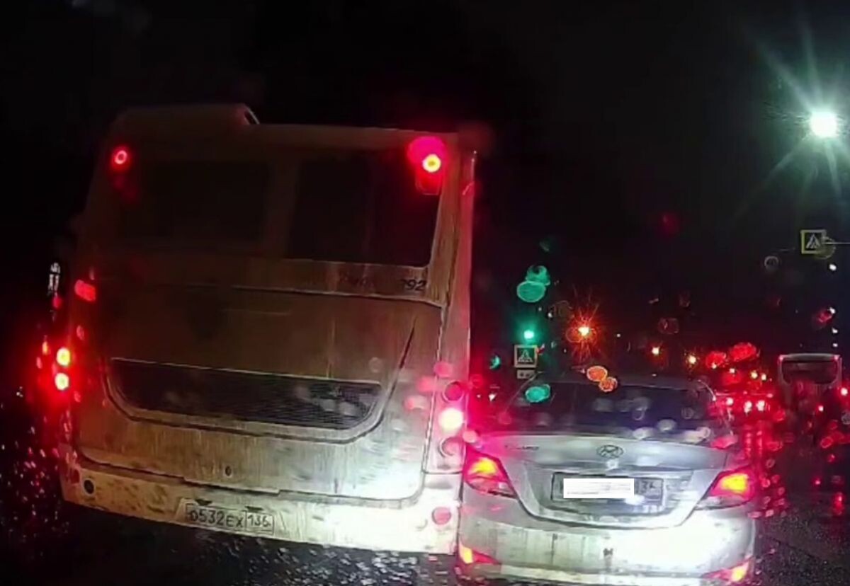 Жесткий момент ДТП с автобусом в пробке попал на видео в Воронеже