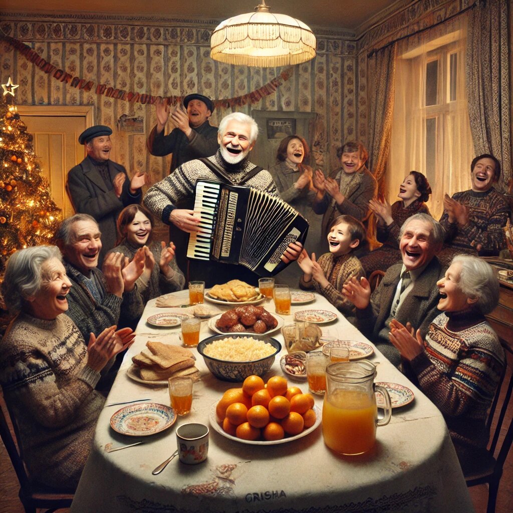 1982 год начался у нас в коммуналке весело и громко. Кто-то ждал перемен в стране, а мы – очередного громкого застолья, где, как обычно, был оливье, холодец и Гриша со своим баяном. А шо? Новый год без музыки – это ж не Новый год!