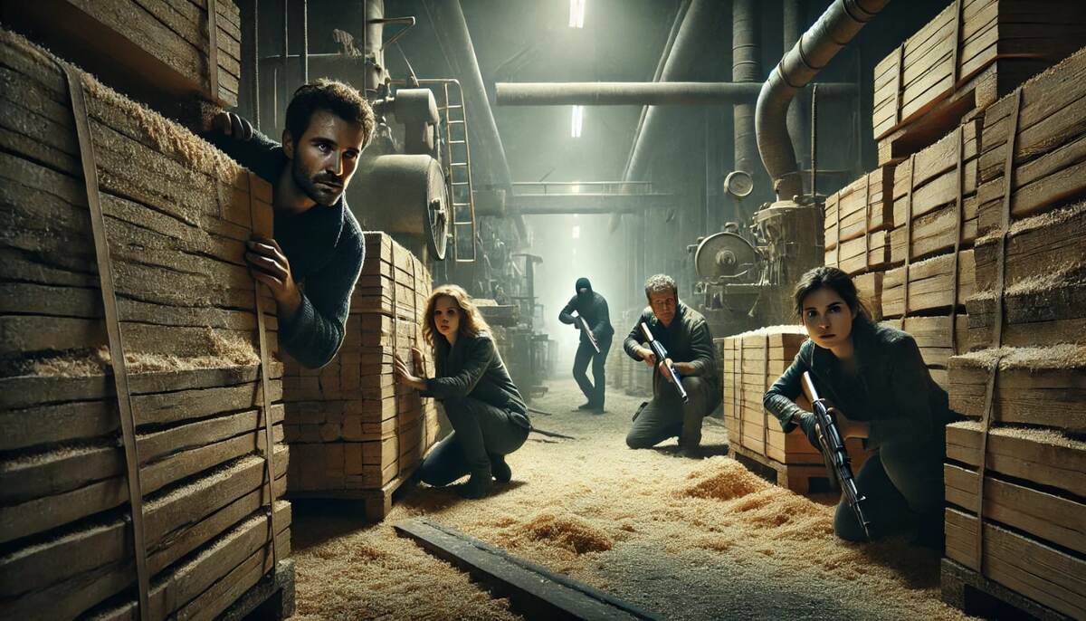 Машина летела по разбитой лесной дороге, подскакивая на выбоинах и грозя вылететь с тропы. В салоне стояла тишина, нарушаемая только ревом мотора и стуком колес по камням. Сергей сидел рядом с Игорем, тяжело дыша. Марина и Алина, прижавшиеся друг к другу на заднем сидении, молчали. — Долго ещё? — спросил Сергей, не оборачиваясь. — Километров пять, максимум, — ответил Игорь, крепко сжимая руль. Его лицо было сосредоточенным, но в голосе ощущалась тревога. — Там можно укрыться на время. — Они скоро пойдут за нами, — пробормотала Марина. — Артём не остановится. Сергей кивнул. Он это понимал лучше всех. Артём был словно загнанный зверь, а такие всегда опасны. Ему нужен был лишь повод, чтобы начать новый виток охоты. Они добрались до старого лесопильного склада, заброшенного много лет назад. Высокие бетонные стены, с трудом удерживающие крышу, обветшавшие ворота и разбросанный мусор создавали иллюзию безопасности. Игорь припарковал машину за зданием, так чтобы её не было видно с дороги. — З
