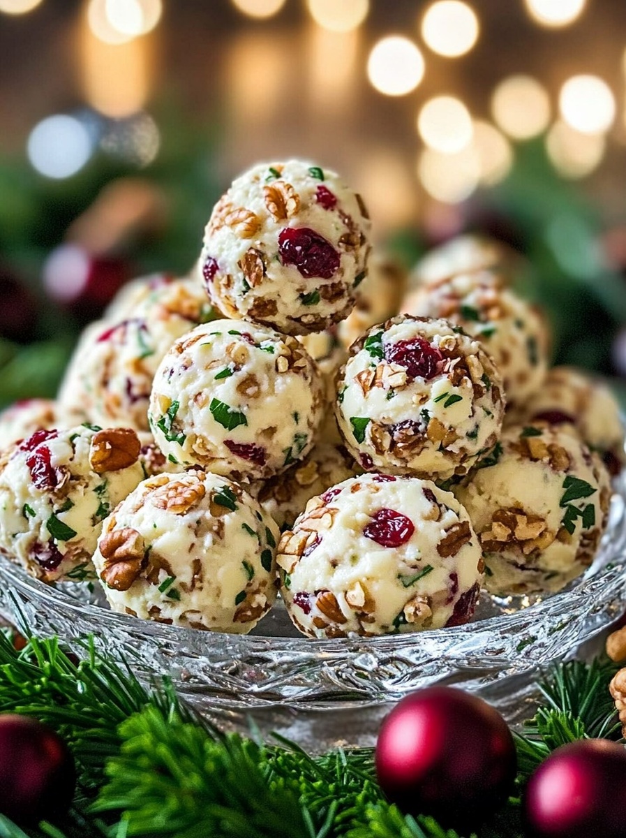 🎄 В преддверии праздников хочется приготовить нечто особенное, что порадует глаз и вкусовые рецепторы. Эти сырные шарики станут идеальным дополнением к вашему праздничному столу. Сочетание сливочного сыра, чеддера, сладко-кислой клюквы и хрустящих грецких орехов создаёт идеальный баланс вкусов. В глубокой миске смешайте сливочный сыр и натёртый чеддер. Перемешивайте, пока масса не станет однородной и кремовой. Аккуратно вмешайте в сырную массу измельчённую клюкву, грецкие орехи и петрушку. Добавьте щепотку соли и немного свежемолотого чёрного перца для баланса вкусов. Возьмите около 1 столовой ложки приготовленной смеси и скатайте её в шарик. Если масса кажется слишком мягкой, охладите её в холодильнике 15-20 минут для удобства формовки. Обкатайте каждый шарик в дополнительно измельчённых грецких орехах, слегка надавливая, чтобы они хорошо прилипли. Разложите готовые шарики на сервировочной тарелке. Украсьте веточками свежей петрушки или праздничной зеленью. Подавайте с крекерами, по