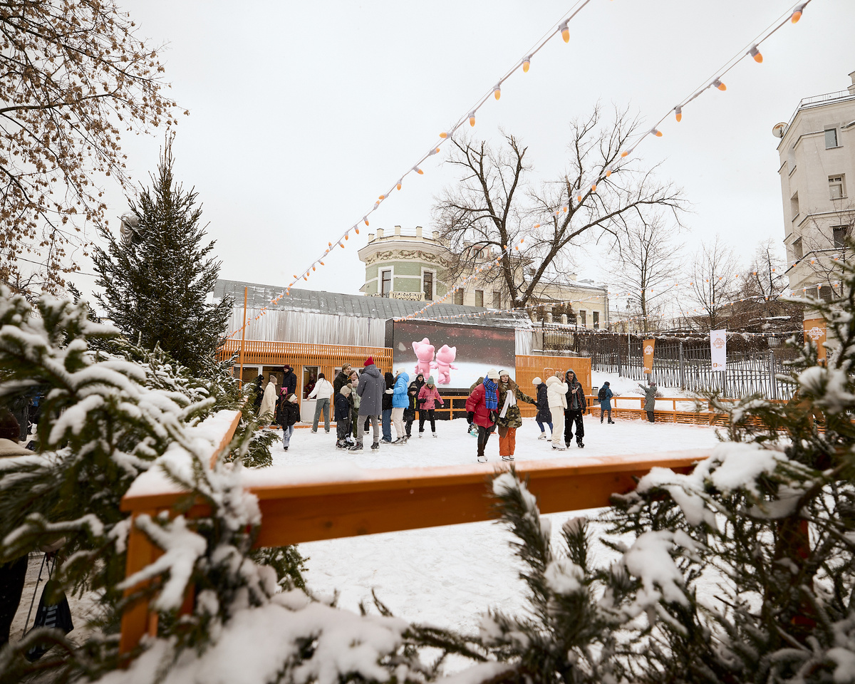 К катку примыкает ресторан "Restaurant by Deep Fried Friends", в котором можно днём перекусить, а вечером повеселиться. Вход на лед совершенно бесплатный, но со своими коньками. За прокат надо будет заплатить. Есть камеры хранения, чтобы оставить вещи.