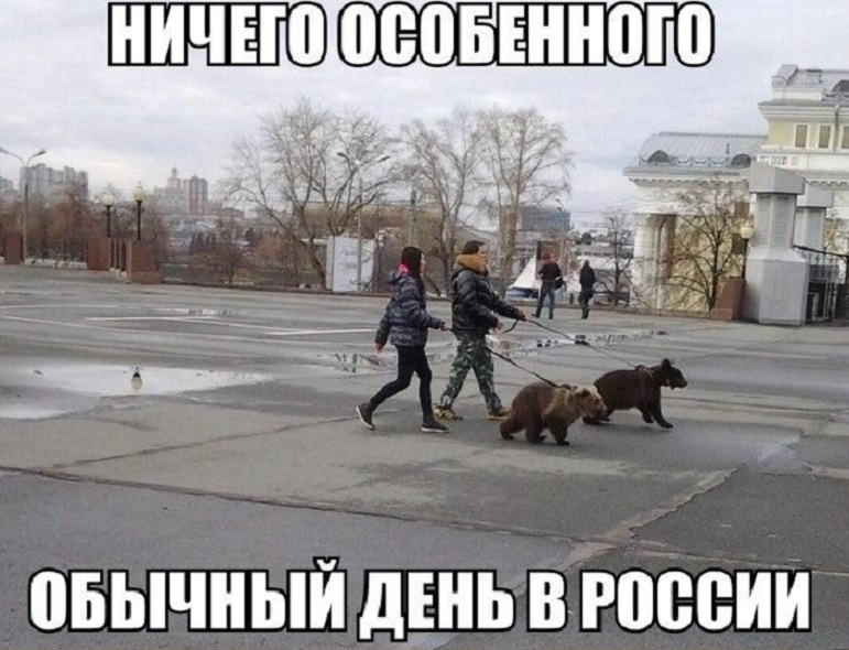 А у некоторых и дома вообще несколько штук. Да, в обычной городской квартире, а когда они подрастут, эти русские выпускают их во двор погулять. И никто на это не обращает внимание, главное – не перепутать чужого медведя со своим.