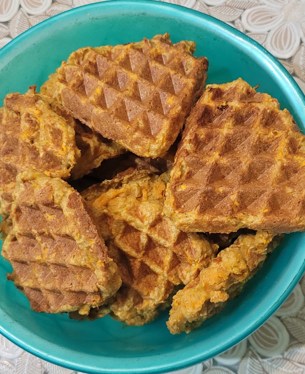 Первым делом я на перекус приготовила морковно-яблочные вафли.