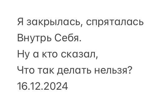 Ну, есть же цели какие то, желания. А делать ничего не хочется. Я вообще целыми днями сплю. Весь декабрь как медведь в спячке, такое ощущение. И вот вопрос на подумать: А кто сказал, что так делать нельзя? Откуда вот это вечное стремление что-то достигать, бежать, делать, делать? А если не делаешь - чувство вины, типа я что-то вероятно упускаю, не успеваю, не делаю и поэтому не особо то есть результаты… По моему личному ощущению, это установки, которые навязываются успешным успехом в обществе, тренерами по целям, да и в целом воспитанием. Неужели, если я буду слушать Себя и свое тело и вместо очередного проекта и новых переговоров, буду спать, моя жизнь так сильно ухудшится? Стану бедной, больной и никому не нужной? Уже научились забивать х.р на эти все «надо» и «должен» и слушать себя? По вопросам сотрудничества: