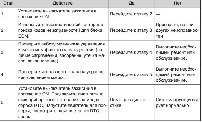 Описание диагностического кода (DTC): неисправность механизма изменения фаз газораспределения на впуске (задержка).