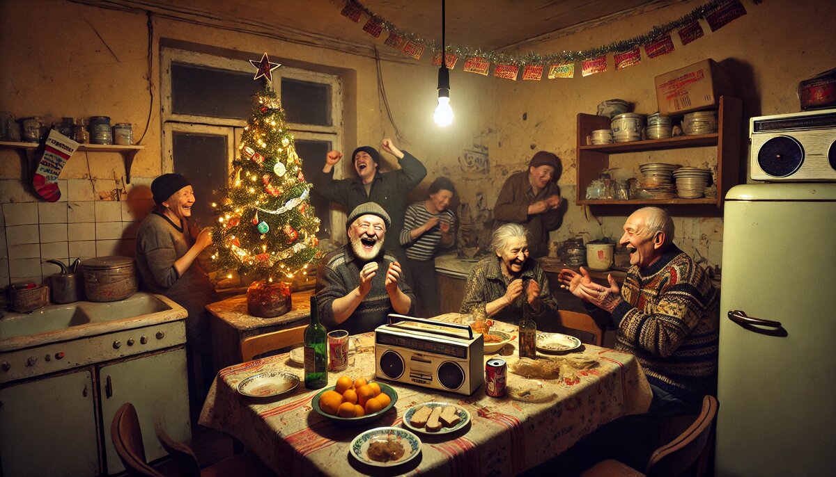 1998-й год. Шо тут говорить – время такое, шо у всех «кризис на лице, а надежда в душе», как сказала Валентина Петровна, откупоривая банку маринованных огурцов. Весь год мы то собирали купоны, то пытались понять, шо вообще происходит с ценами и жизнью. И вот под конец этого бедственного года мы с нашей коммуналкой решили: «Кризис кризисом, а Новый год никто не отменял!»