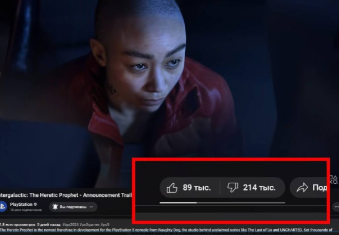 Компания Naughty Dog оказалась в центре обсуждений после публикации трейлера их нового проекта — Intergalactic: The Heretic Prophecy. Видео, выложенное на YouTube, собрало 214 тысяч дизлайков при всего 89 тысячах лайков, вызвав бурную дискуссию среди геймеров.