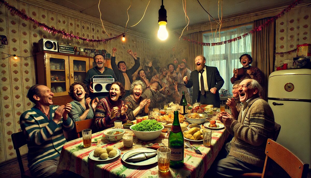 31 декабря мы все собрались на кухне. Стол был скромный, но душевный: тазик оливье от Люси, холодец от Валентины Петровны, селёдка с картошкой и пирожки с капустой от Клавы. В центре стола красовалась бутылка шампанского, которую все смотрели, как на символ надежды.