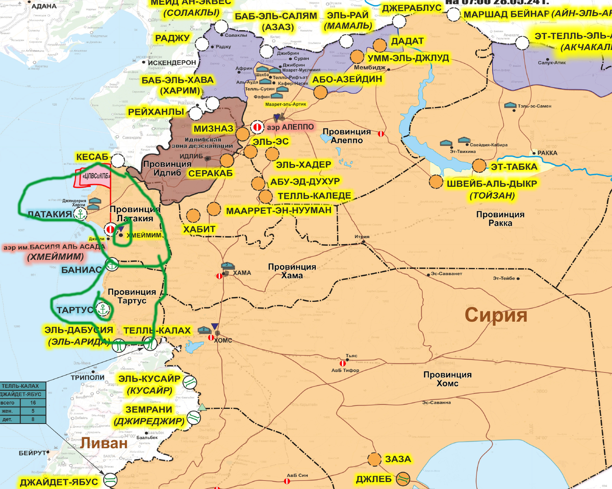 Сначала немного воспоминаний. Это было очень давно, около сорока лет назад и память оставила лишь обрывки воспоминаний. Два мужика в гражданской одежде с Калашниковыми, за плечами, пересекающими дорогу с какими-то сумками в руках, явно идущими из магазина... Женщина продавец в какой-то лавке продающая плакаты (в других лавках только мужчины)... Много, много микро грузовичков в порту уже вросшиеся в землю с частично оторванными зеркалами.. Через несколько лет, где то рядом в море... американский самолет многократно то ли атакующий, то ли имитирующий атаку так близко, что видно шлем пилота и бьющий по ушам звук.. Ещё через несколько лет.. Израильские самолеты, разбомбившие очередной лагерь палестинских беженцев и люли от командира за то, что мы это проморгали... Итак. Сначала карта. Наш ВМФ базируется в Тартусе, провинция Тартус, ВВС в Хмеймим провинция Латакия. Между ними грубо 50 км. Снабжение авиации без флота не реально, охрана базы флота без авиации не реально. Т
