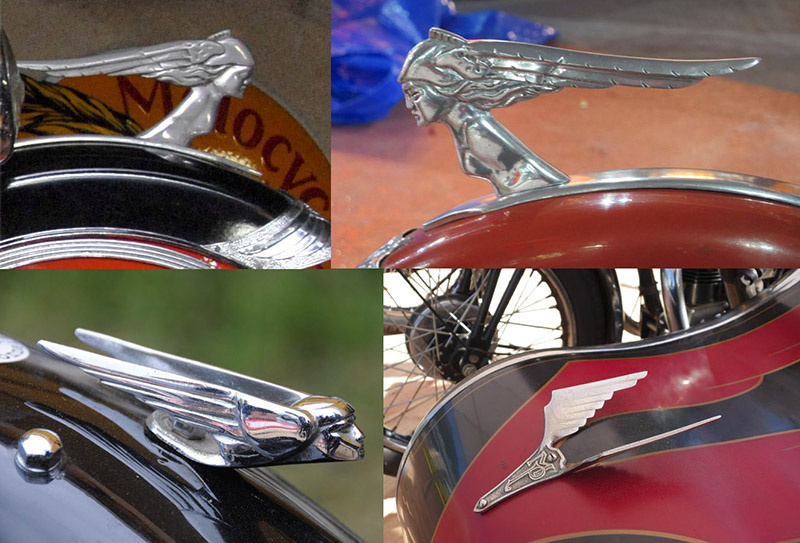 Талисманы, как и любой другой предмет, который может нанести вред пешеходам, и теперь под запретом. Это правда, что головы индейцев, головы львов или простые номерные знаки на передних крыльях мотоциклов легко превращаются в нож для нарезки ветчины из пешехода. К счастью, наши славные коллекционные предки автомобилей и мотоциклов, чаще всего бережно сохраняют маскот( талисман с французского) . Обзор некоторых мотоциклетных талисманов золотых лет … Любимая тема талисманов – скорость, очевидно, что все, что летает, вдохновляет многих. Два самолета были установлены на гоночных мотоциклах Sunbeam 600. Воздушная мечта в более современной версии 1950-х годов с этими реактивными самолетами. (Фото справа © Z’humoristenouveau) Именно в музее Цеппелинов во Фридрихсхафене были обнаружены эти дирижабли, установленные на крылья мотоциклов Логотипы брендов Все мы знаем крыло, которым маркируются мотоциклы Honda (автомобили предпочитают стилизованную букву H). Его зарождение восходит к 1947 году