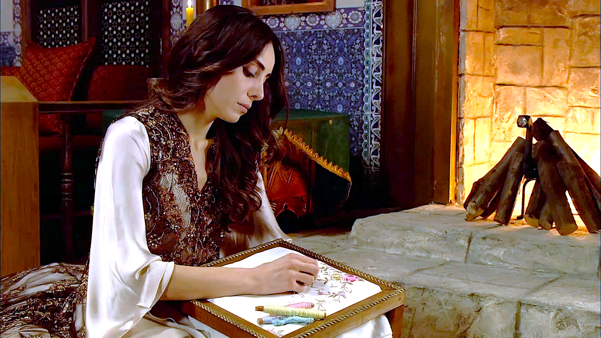 Страдалице Хюррем становится лучше. Её лицо скоро станет красивым как прежде. Султан сам заботится о ней. Все эти дни и ночи она отдыхает в его покоях. А Махидевран тоже приходит в себя, но морально. Можно сказать, она сидит " за пяльцами прилежно." Помните, как там у Пушкина? 😉 Смотрите, какой я Вам кадр нашла! Красота! Здесь Махидевран - само благоразумие. Считается, что вышивание успокаивает, приводит в порядок разум и душу. К тому же это занятие требует терпения. А Махидевран оно очень пригодится. Так что, она отвлеклась, занялась делом. Это ненадолго, как потом выяснится. Но хотя бы на данный момент зритель может не переживать, что Махидевран снова набросится на соперницу. Хюррем ещё слаба. Служанки кормят её с ложечки. Вот хотела она стать госпожой, и вроде как уже почти! Внимание к Хюррем во дворце как к настоящей госпоже. И занимает она главную кровать Османской империи! А Нигяр Калфа стоит около султанской кровати. Нигяр руководит служанками, которые вертятся вокруг фавори