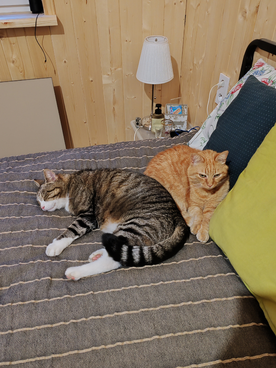 Ну что ж, зато все коммуникации успели сделать.В доме тепло - спасибо умным розеткам, к которым подключены радиаторы - можно поддерживать и регулировать температуру в свое отсутствие и приезжать в нагретый дом в любое время. Септик тоже работает - прошу прощения, теплый горшок в доме очень важен :). Проблема только с водой - в садоводстве водопровод летний, так что приходится питьевую воду возить из квартиры, а на бытовые нужды брать из колонки. Но даже это небольшое неудобство не так страшно. В конце концов - главное котам хорошо, а уж мы потерпим :)