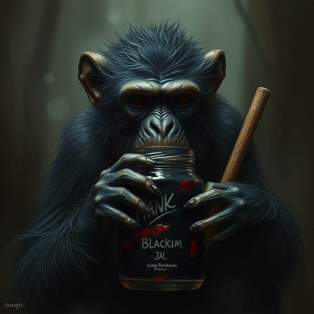 Позади раздался резкий хруст. Илья обернулся и увидел, как обезьяны медленно поднимаются на задние лапы. Их глаза горели ярче, чем прежде, а их тела покрывала та самая тёмная жидкость из разбитой банки. Они двигались не как животные, а как существа, которые когда-то были людьми.