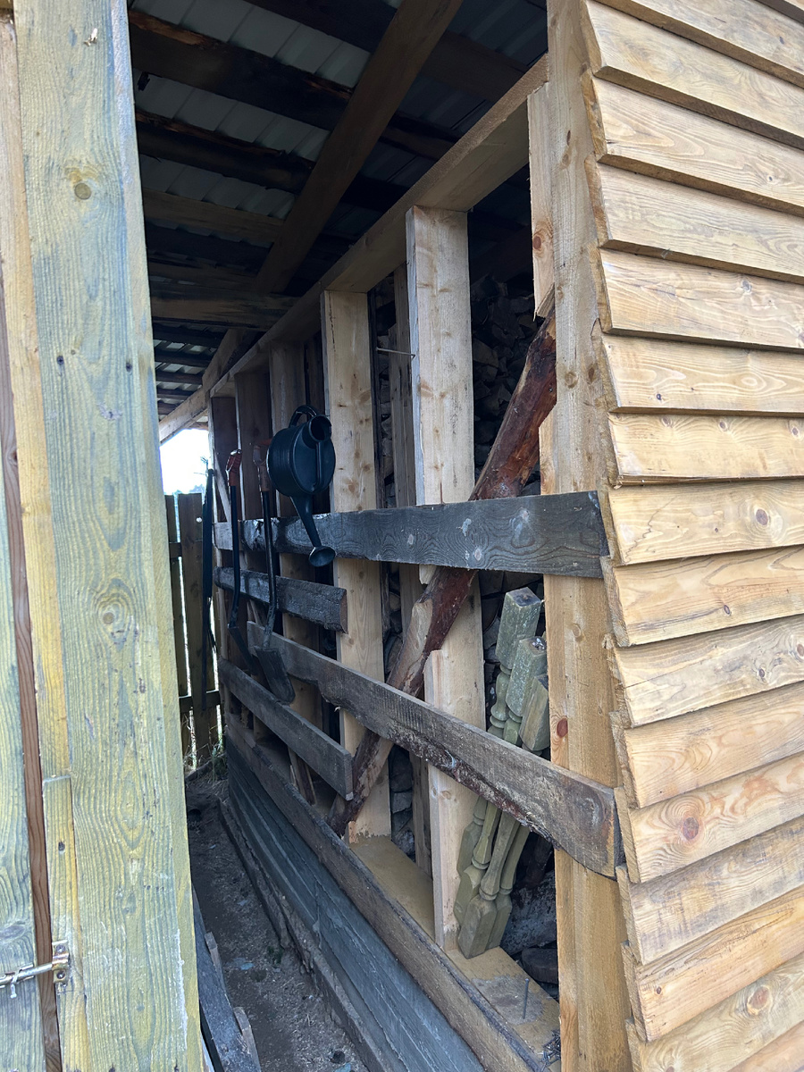 Задача стояла сделать дровеник для бани, Я залил ленточный фундамент, засыпал его внутри песком, из доски 150/50, сделал каркас. Переднюю стенку забил доской 150/25, остальные стенки забил так же «дуймовкой», но параллельно фундаменту и через расстояние. Закрыл крышей и вот что получилось😂