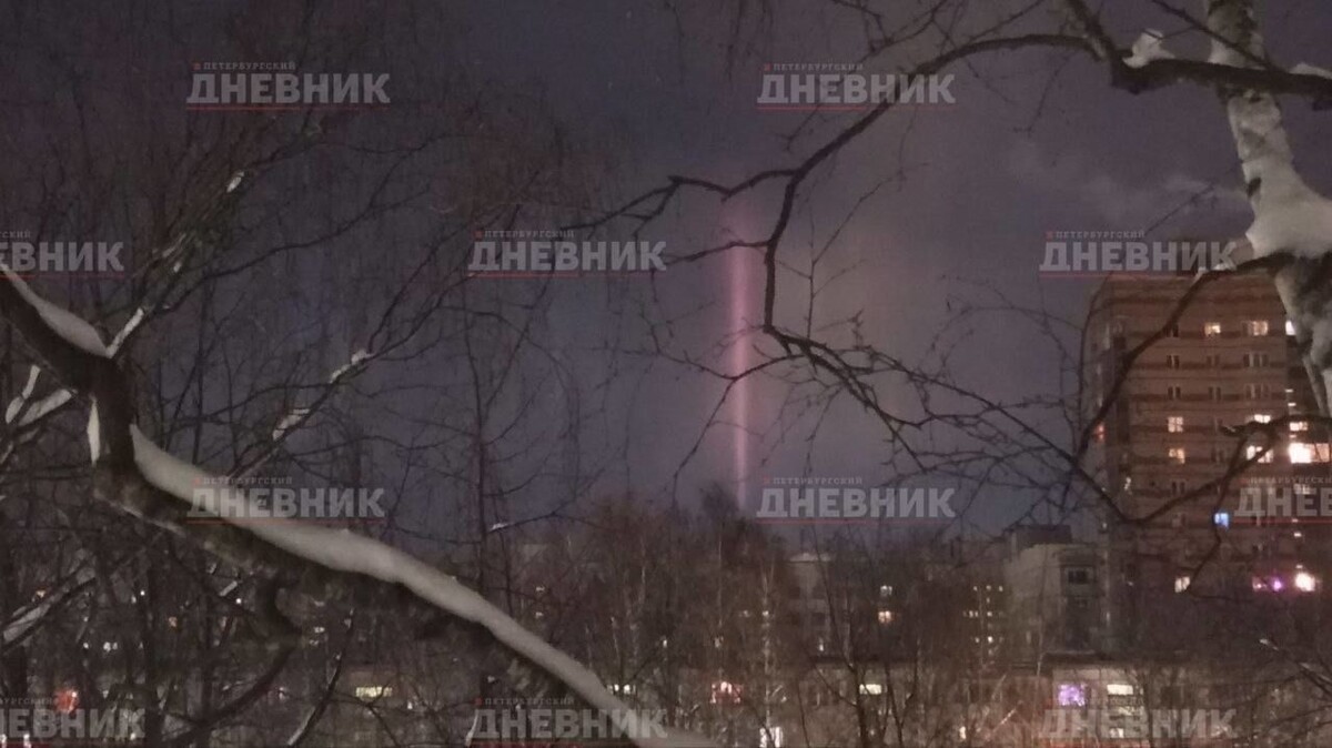Накануне вечером в Санкт-Петербурге, в районе Гражданского проспекта, можно было наблюдать необычное природное явление – световые столбы. Их было два, фиолетовый и белый. Такое возникает в результате оптического эффекта при морозе. Это вид примерно с перекрестка Гражданского и Луначарского проспектов, в сторону Академической (фиолетовый столб) и Муринского парка (белый). Стоит отметить, что это явление возникает, когда в атмосфере появляются плоские кристаллы льда. Свет, например, от фонарей, рассеивается на них, и образуются такие «столбы» над каждым ярким источником света. Для появления этого оптического эффекта должны быть определённые условия: низкая температура (примерно от −15 градусов и ниже) и влажность. Ранее сообщалось, что в лесу под Петербургом обнаружены «ледяные волосы».