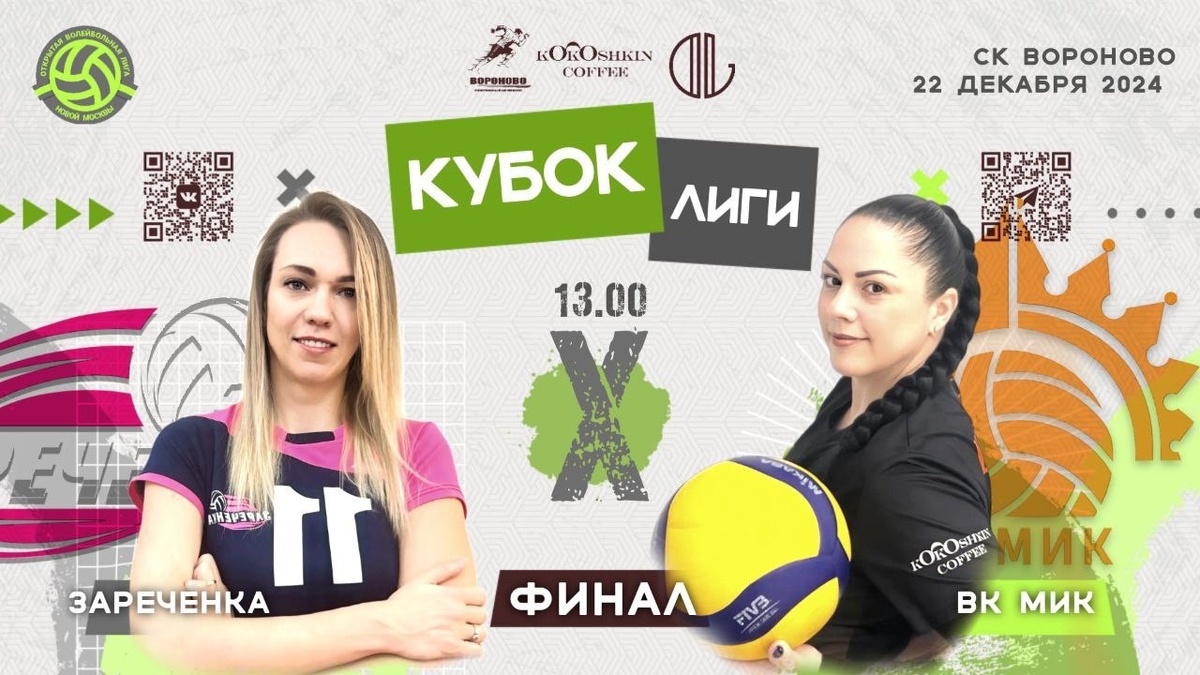 В воскресенье, 22 декабря 2024 года в МБУ "СК "Вороново" состоится Финал Кубка Лиги Новой Москвы по волейболу! Большой волейбольный праздник вновь примет наш комплекс! В 11.00 мужской финал, встретятся ВК "Юность" Подольск и СК "Вороново" Вороново, в 13.00 женский финал между командами "Зареченка" Одинцово и ВК "МИК" Кокошкино!