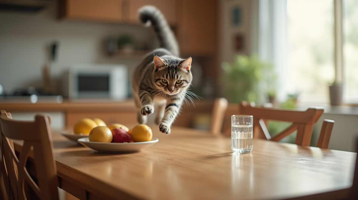 Многие владельцы кошек сталкиваются с ситуацией, когда пушистый любимец прыгает на стол. Такое поведение может быть неудобным или даже небезопасным, особенно если на столе находятся хрупкие предметы, продукты питания или горячие напитки. Почему кошки так делают, и предложим эффективные способы скорректировать их поведение. Для начала важно понять причины такого поведения. У кошек есть несколько естественных мотивов, которые побуждают их исследовать возвышенности, такие как столы: Кошки по своей природе любопытны. Они любят исследовать окружающий мир и находиться на высоте, откуда можно наблюдать за обстановкой. Оставленная на столе еда неизбежно привлечет внимание кошки. Даже если вы уверены, что ваш питомец сыт, запахи могут побудить его исследовать поверхность. Если кошка видит, что вы проводите много времени за столом, она может захотеть быть ближе к вам. Это особенно актуально, если на столе находится компьютер, за которым вы работаете. Шуршащие пакеты, блестящие предметы и движущи