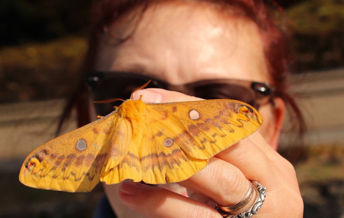 Как оказалось, эта большая пушистая моль (моль по яп. - "га") называется в Японии "усутабига" (ウスタビガ - моль "Тонкий фонарик"). Японцам ее кокон очень уж напоминает подвешенный бумажный фонарик. Узнала, что "усутабига" (научное название: Rhodinia fugax) - относится в Японии к крупному виду бабочек, отряд Ямамаюга ("Горная пушистая моль").